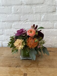 Medium Arrangement — 4″ x 4″ vase, ideal for round tables 36″–60″ in diameter,